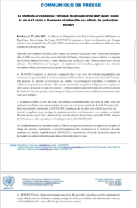 Itangazo rya Monusco ryamagana ubwicanyi bwakorewe abasivile mu ntara ya Ituli bukozwe na ADF.