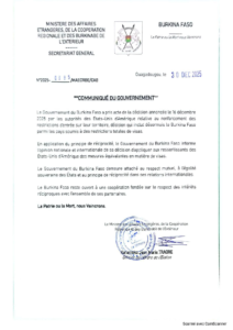 Minisiteri z’Ububanyi n’Amahanga n’Ubutwererane bwibi bihugu bya Mali na Burikinafaso nazo zasubije Leta ZUnze Ubumwe Z’Amerika ko ibi bihugu bikurikije amasezerano mpuzamahanga mumigenderanira avuga ko iyo igihugu kigufatiye icyemezo nawe ufata nk’icyo bagufatiye ko nabo bafashe icyemezo cy’uko ibizakorerwa abaturage babo na Leta Zunze Ubumwe Z’Amerika nabo aribyo bizakorerwa abaturage biki gihugu.