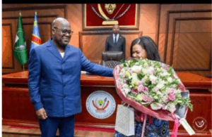Perezida Felix Antoine Tshisekedi yatanze igihuru (indabo) ku mugore utari uwe.