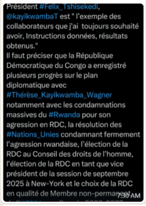 Mu mwaka wa 2024 nibwo Thérèse Kayikwamba Wagner yinjiye muri guverinoma iyobowe na Madame Judith Suminwa Tuluka, wabaye umugore wa mbere wagizwe minisitiri w’intebe muri Repubulika Iharanira Demokarasi ya Kongo, abo bagore bombi bakaba bafatwa nk’inkingi za mwamba zifashishwa na bwana Antoine Felix Tshisekedi mu kumufasha kugera kubyo ashaka muri Repubulika iharanira Demokarasi ya Kongo.